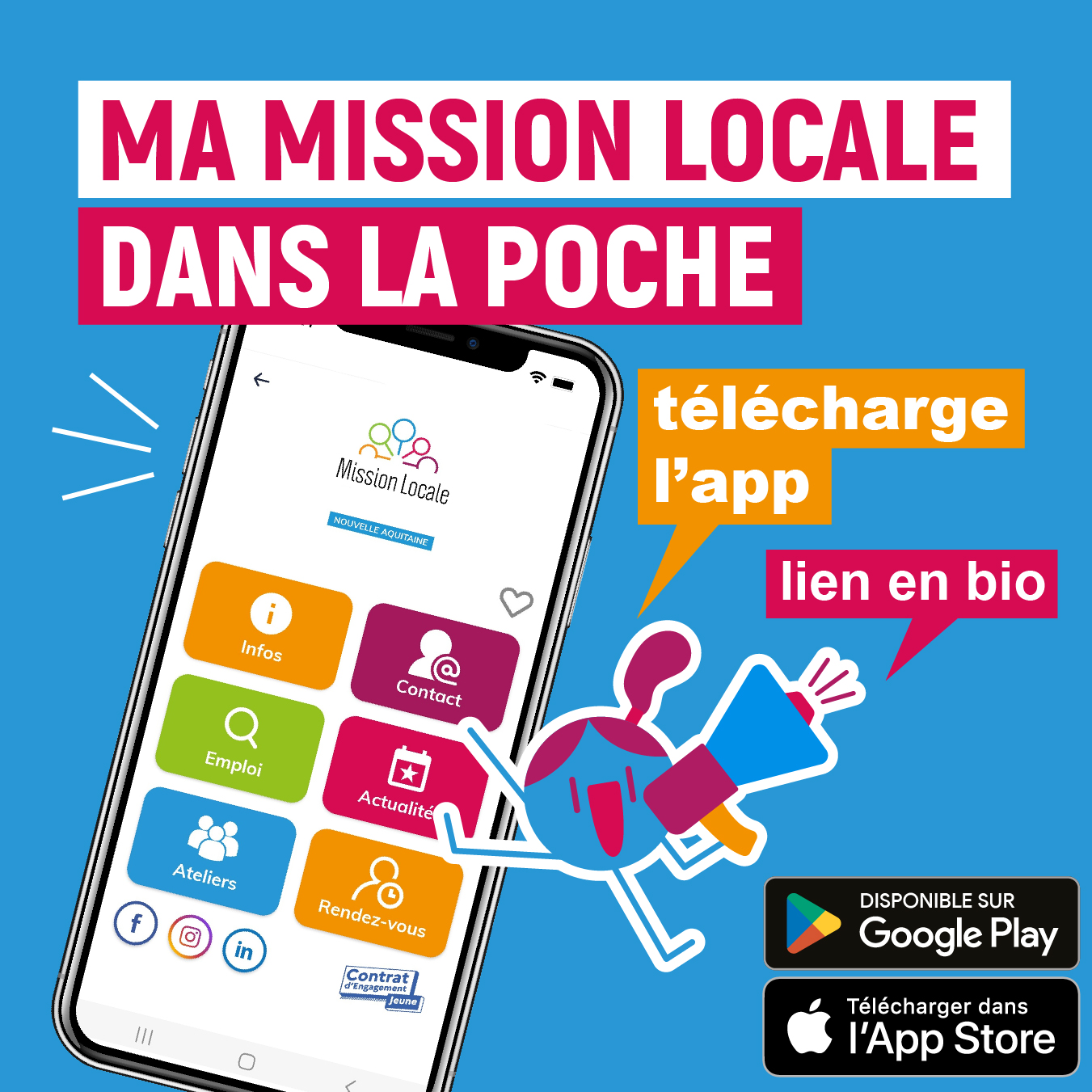 📱 💻- Tu as 16-25 ans en Haute Gironde ? Retrouve nos infos, actus, actions avec inscriptions en ligne, offres d’emploi… sur « Ma Mission Locale »> Une fois téléchargée, rentre ta commune et tu trouveras la Mission Locale Haute Gironde.Dispo sur Google Play ou App Store➡️ scanne le QR Code ou clique ici